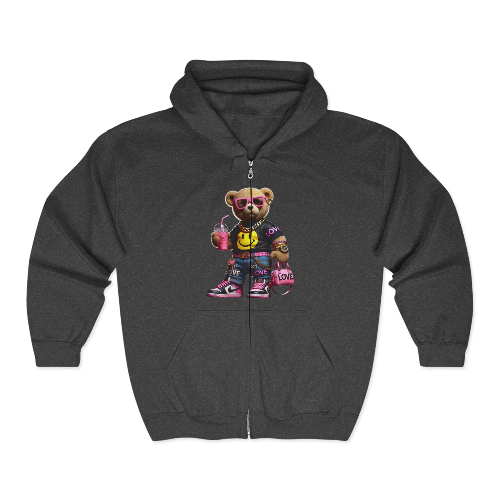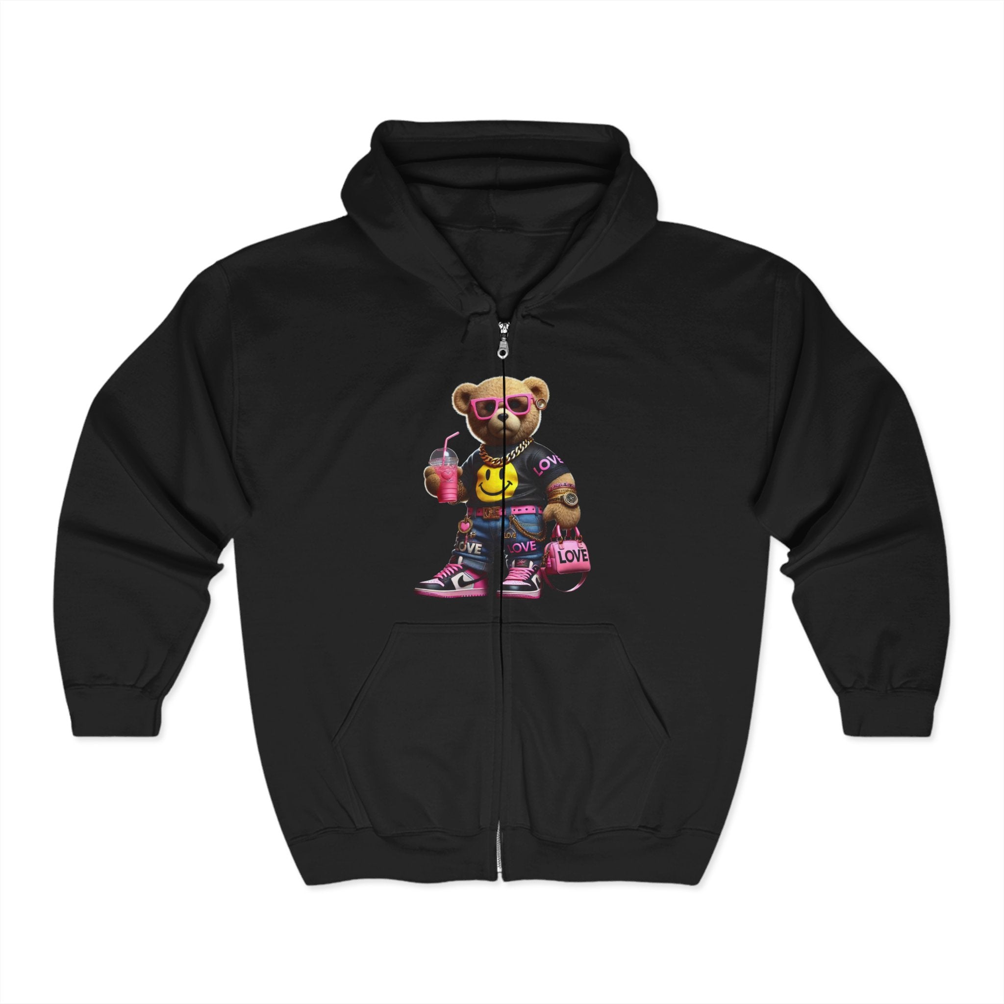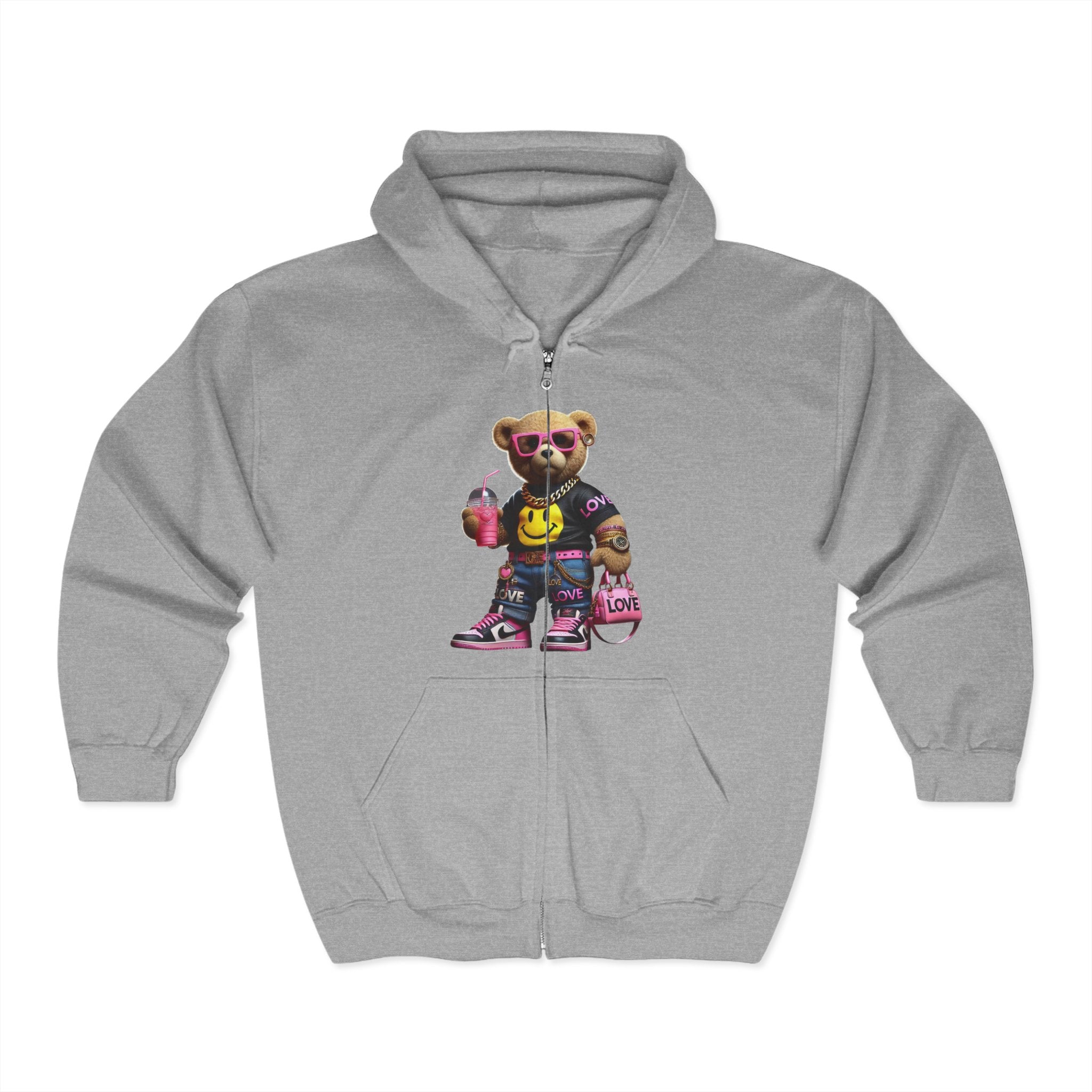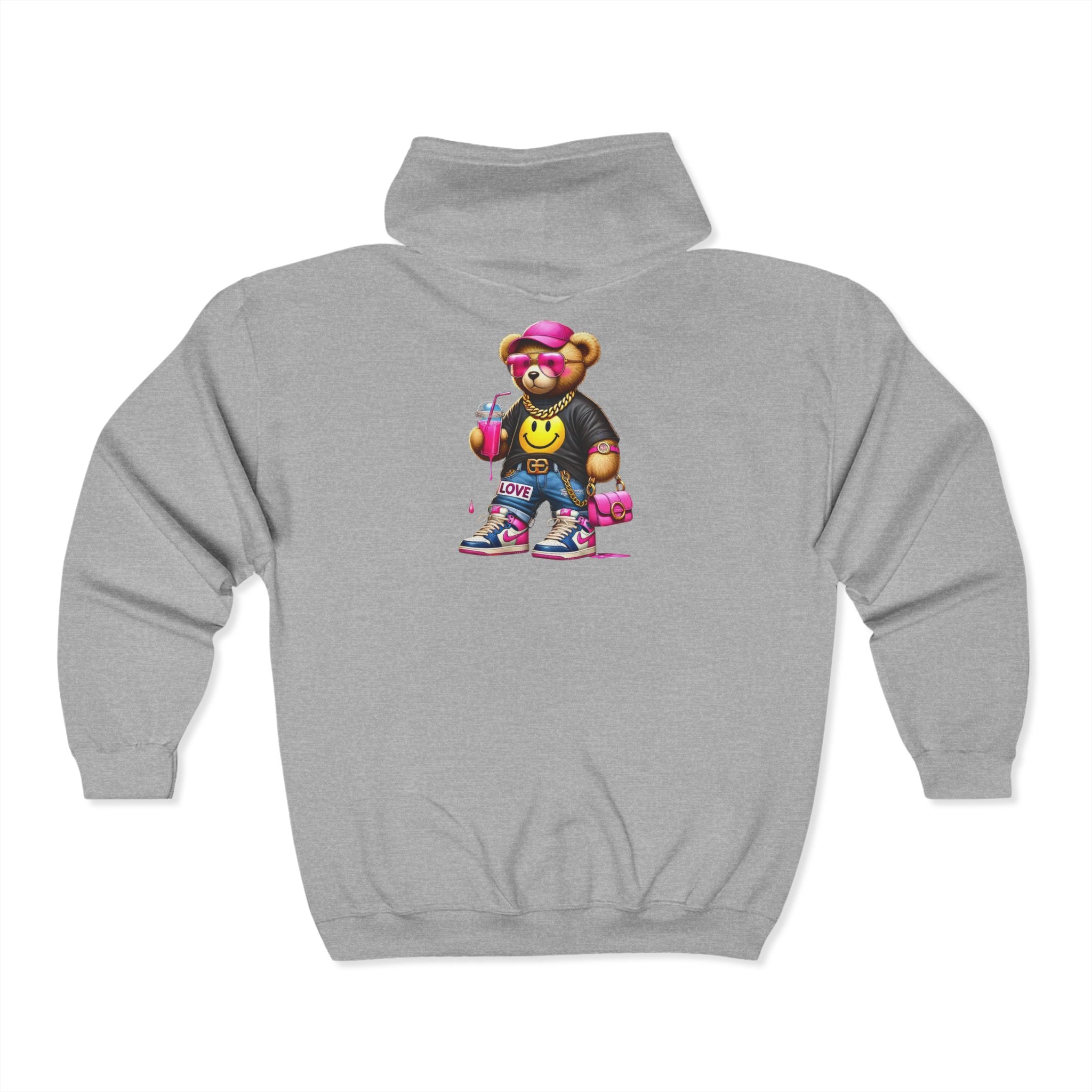 Cool Graphic Zip Hoodie: Trendy Bear Design, Unisex Fashion, Casual Wear, Street Style, Gift for Teens, Hoodie with Attitude
