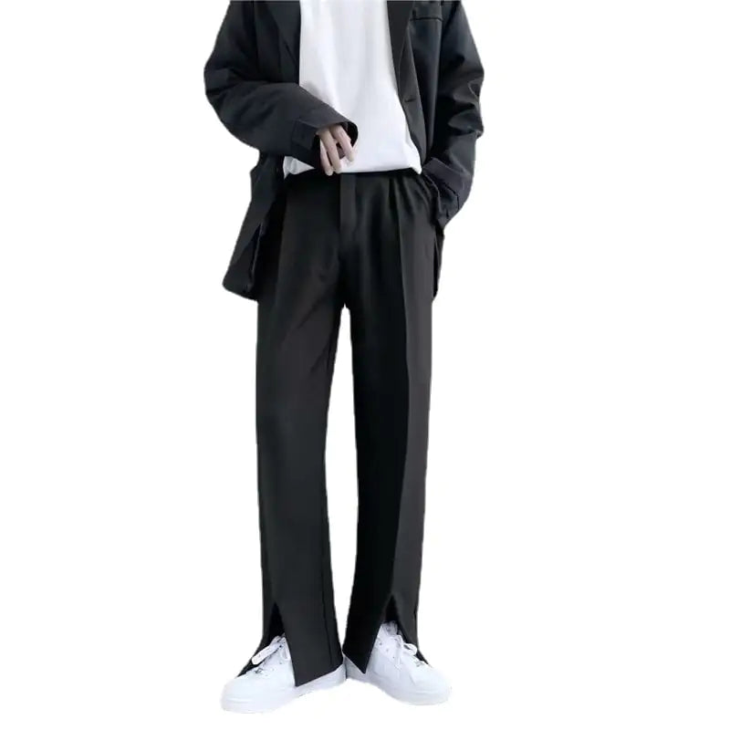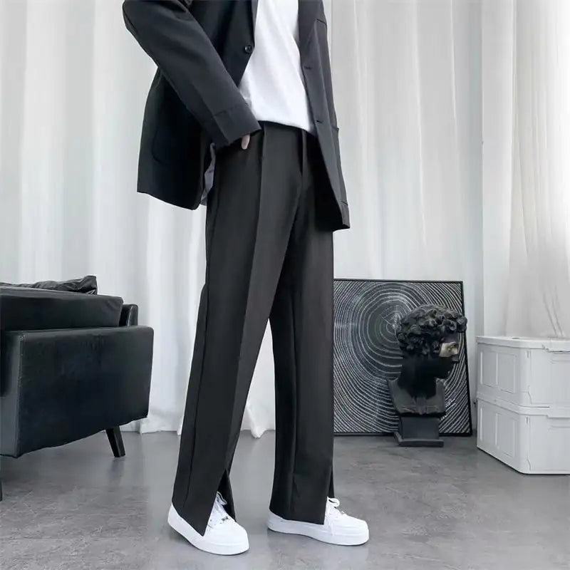 Flared Straight Leg Slacks with Mopping Slits