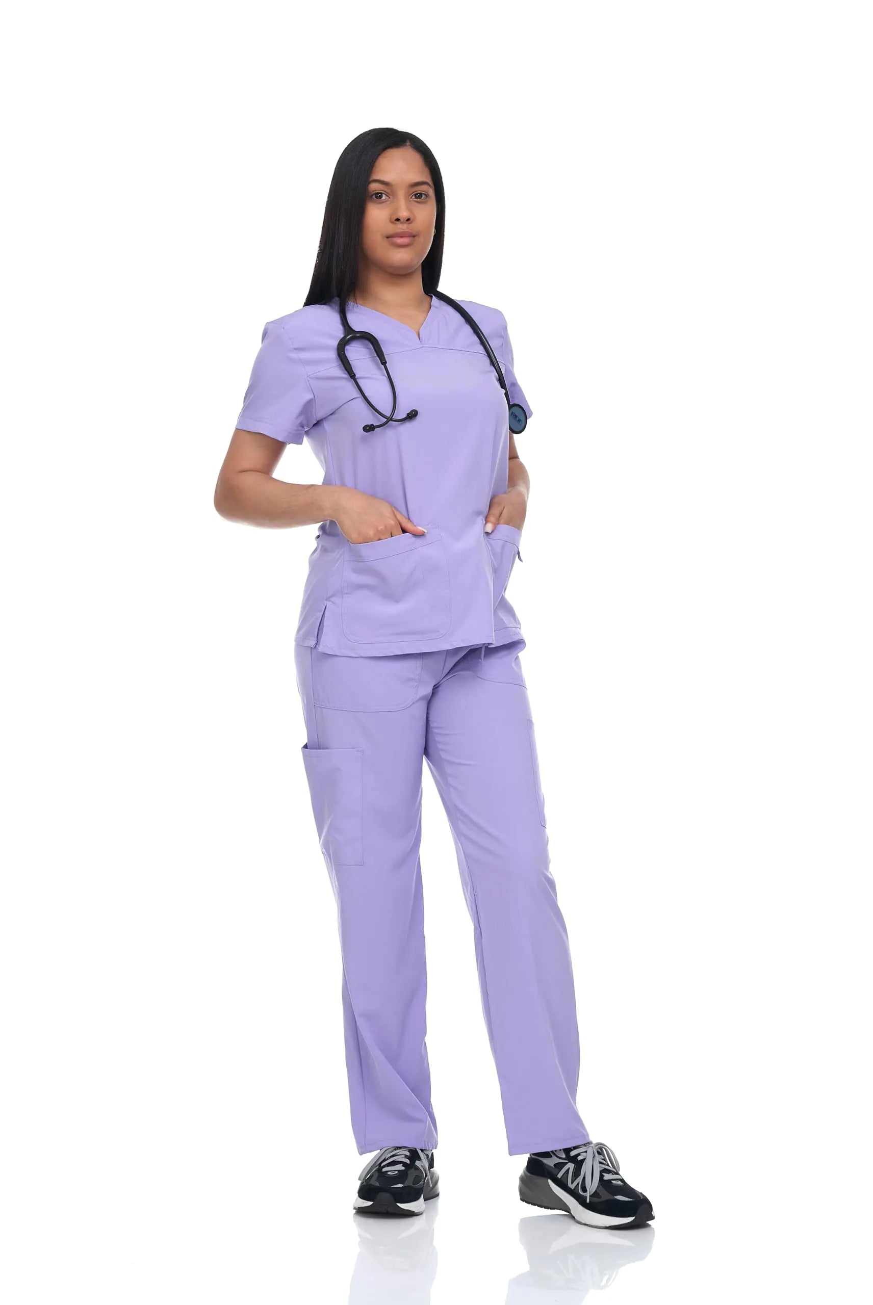 Flex Core New York Scrub Set Top and Pants with 4 Pockets Stretch Fabric Lightweight Nurse Uniform Set for Home Attendant (Lavender X-Large)