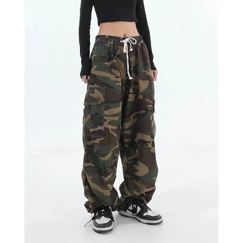 High Street Camouflage Wide Leg Workwear Trousers