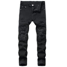 QIMYUM Mens Slim Fit Stretch Jeans Distressed Straight Leg Denim Pants Fashion Biker Jeans Ripped Skinny Jeans for Men