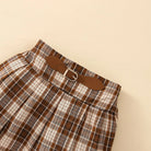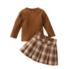 Available in a classic brown, this ensemble is not just fashionable but also practical. The long-sleeve top paired with a stylish plaid skirt creates a charming look that your child will love. The soft treatment fabric technology guarantees a gentle touch against the skin, making it perfect for everyday wear during the cooler months.