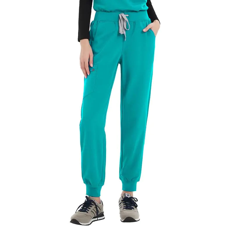 Uniforms World Avant Womens Scrubs Pant—Slim Jogging Pants Yoga Waistband 5 Pockets Anti-Wrinkle Teal